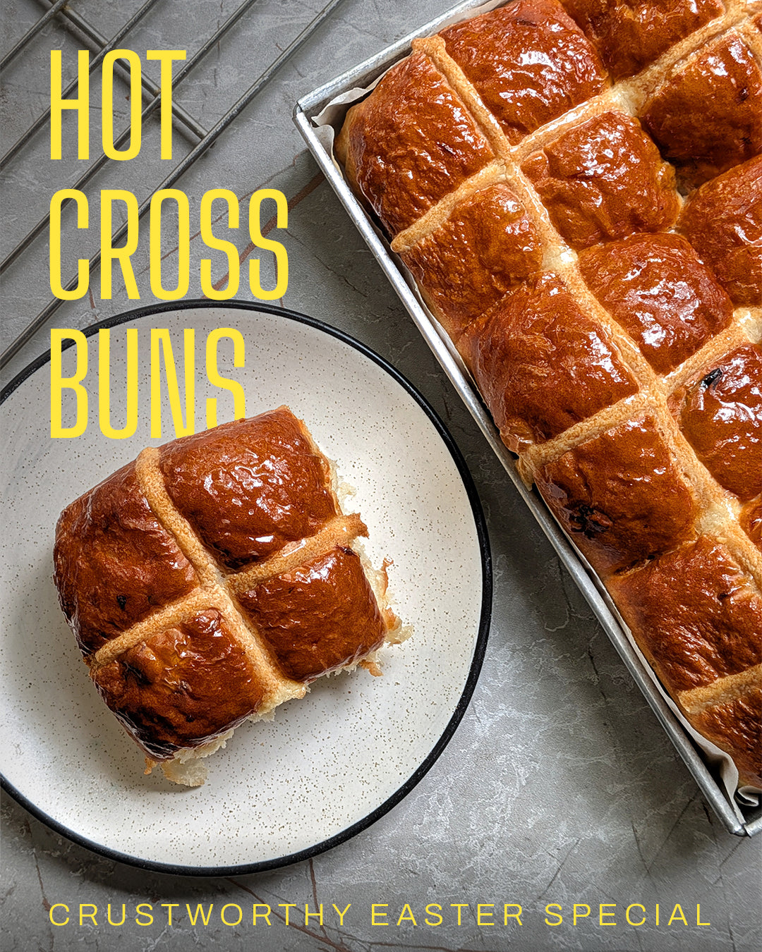 Soft, lightly spiced, laden with fruits and raisins, finished with the classic cross, and layered generously with Vanilla Custard Cream: the signature CrustWorthy twist, our take on the Easter Staple is here!